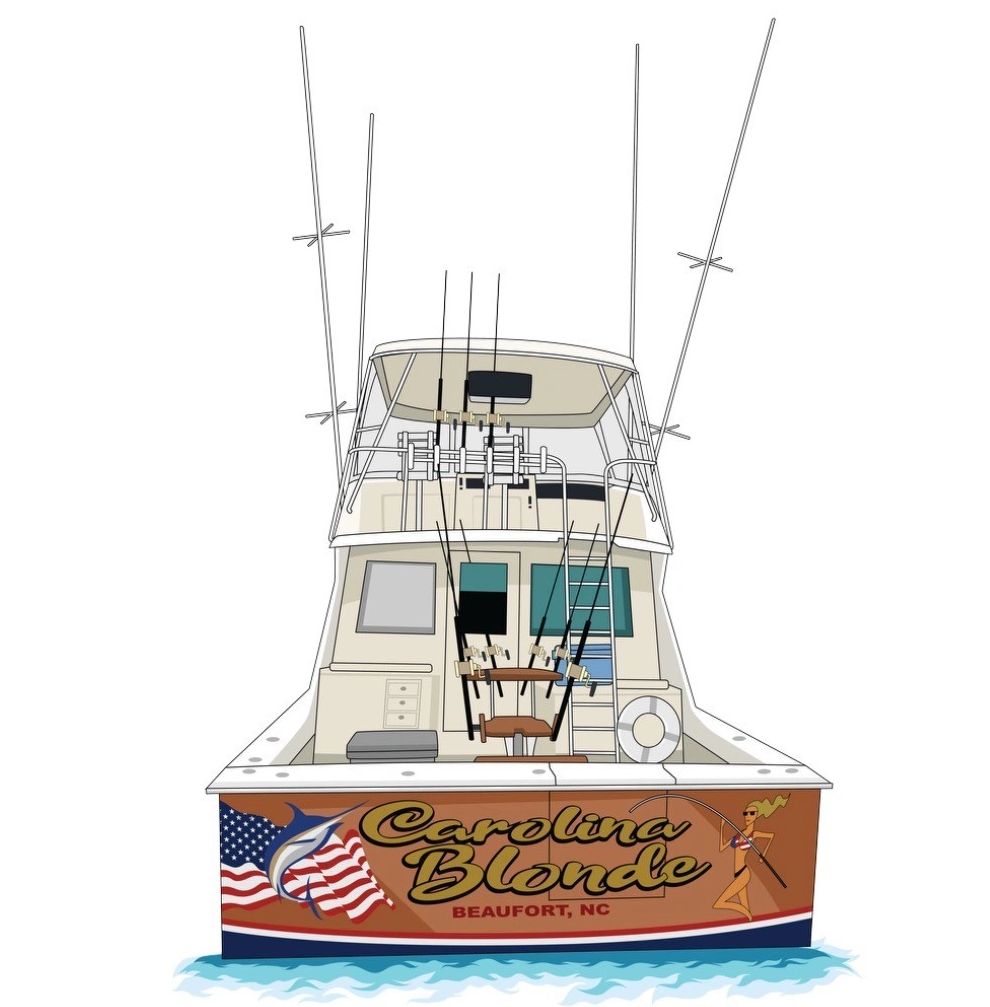The Blonde is a 46 foot Hatteras Convertible with a fast 23 knot cruise perfectly suited to navigate North Carolina's unique inlets and waters safely. She is equipped with a life raft, offshore life jackets, 130 lb class fighting chair, tuna door, outriggers and modern electronics. She has a comfortable, air conditioned, spacious salon and cockpit with additional helm couches up top. Down below she has a galley with a microwave, stove and large fridge. She has two staterooms and two bathrooms with showers. Her bathrooms are clean and odor free with electroscan toilets.